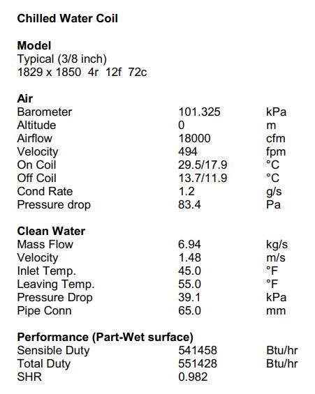 در تصویر زیر خروجی محاسبات مربوط به کویل سرمایشی مطابق با شرایط استاندارد قابل مشاهده است.