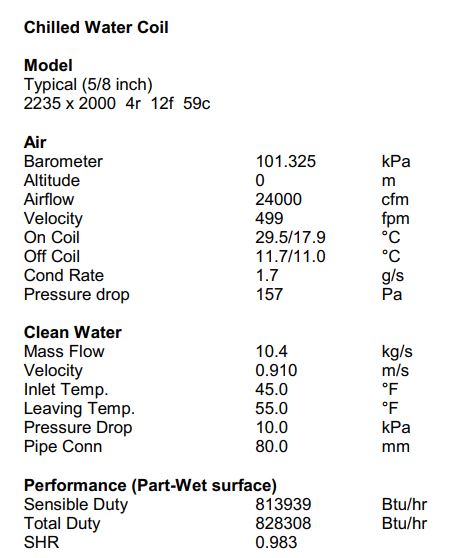 در تصویر زیر خروجی محاسبات مربوط به کویل سرمایشی مطابق با شرایط استاندارد قابل مشاهده است.