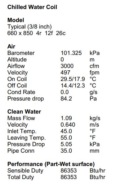 در تصویر زیر خروجی محاسبات مربوط به کویل سرمایشی مطابق با شرایط استاندارد قابل مشاهده است.