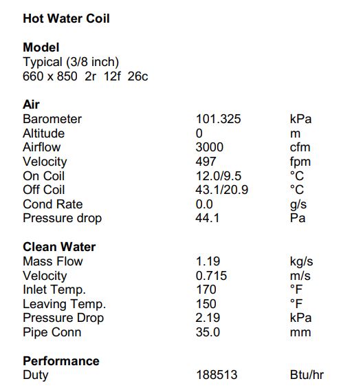 در تصویر زیر خروجی محاسبات مربوط به کویل گرمایشی مطابق با شرایط استاندارد قابل مشاهده است.