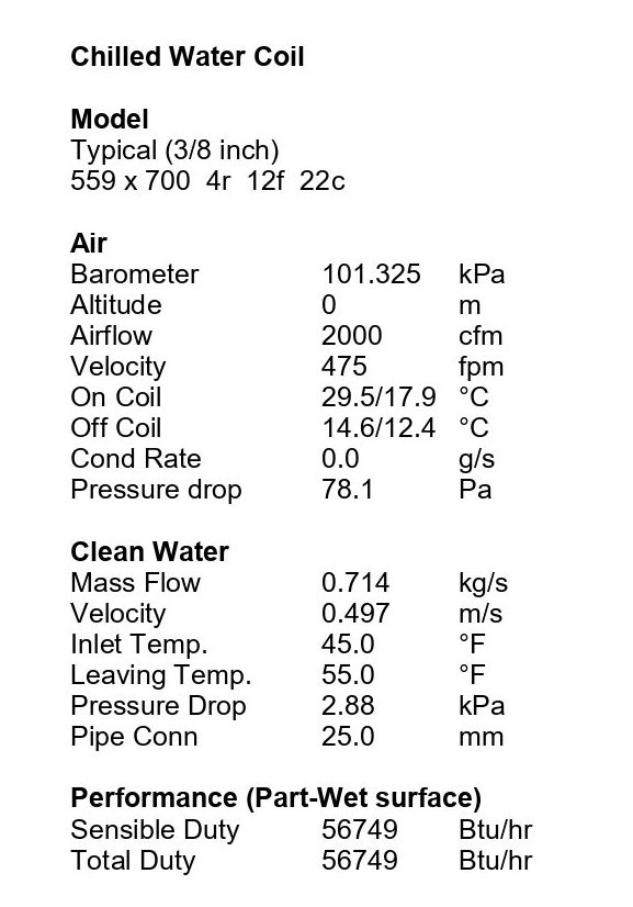 در تصویر زیر خروجی نرم افزار کویل سرمایشی هواساز AT-NAHU20 مطابق با شرایط استاندارد قابل مشاهده است.