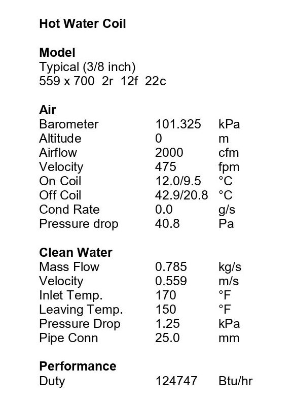 در تصویر زیر خروجی محاسبات مربوط به کویل گرمایشی هواساز AT-NAHU20 مطابق با شرایط استاندارد قابل مشاهده است.